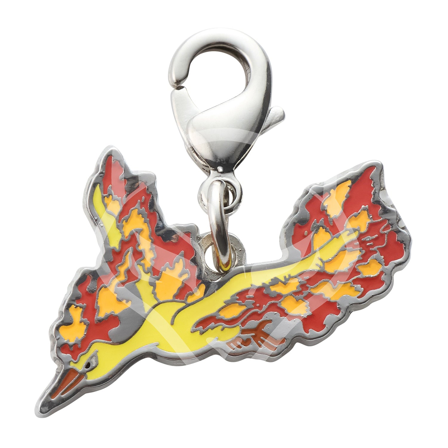 Ciondolo in zinco ed acciaio ufficiale Pokémon Center raffigurante l'uccello leggendario Moltres della prima generazione!
